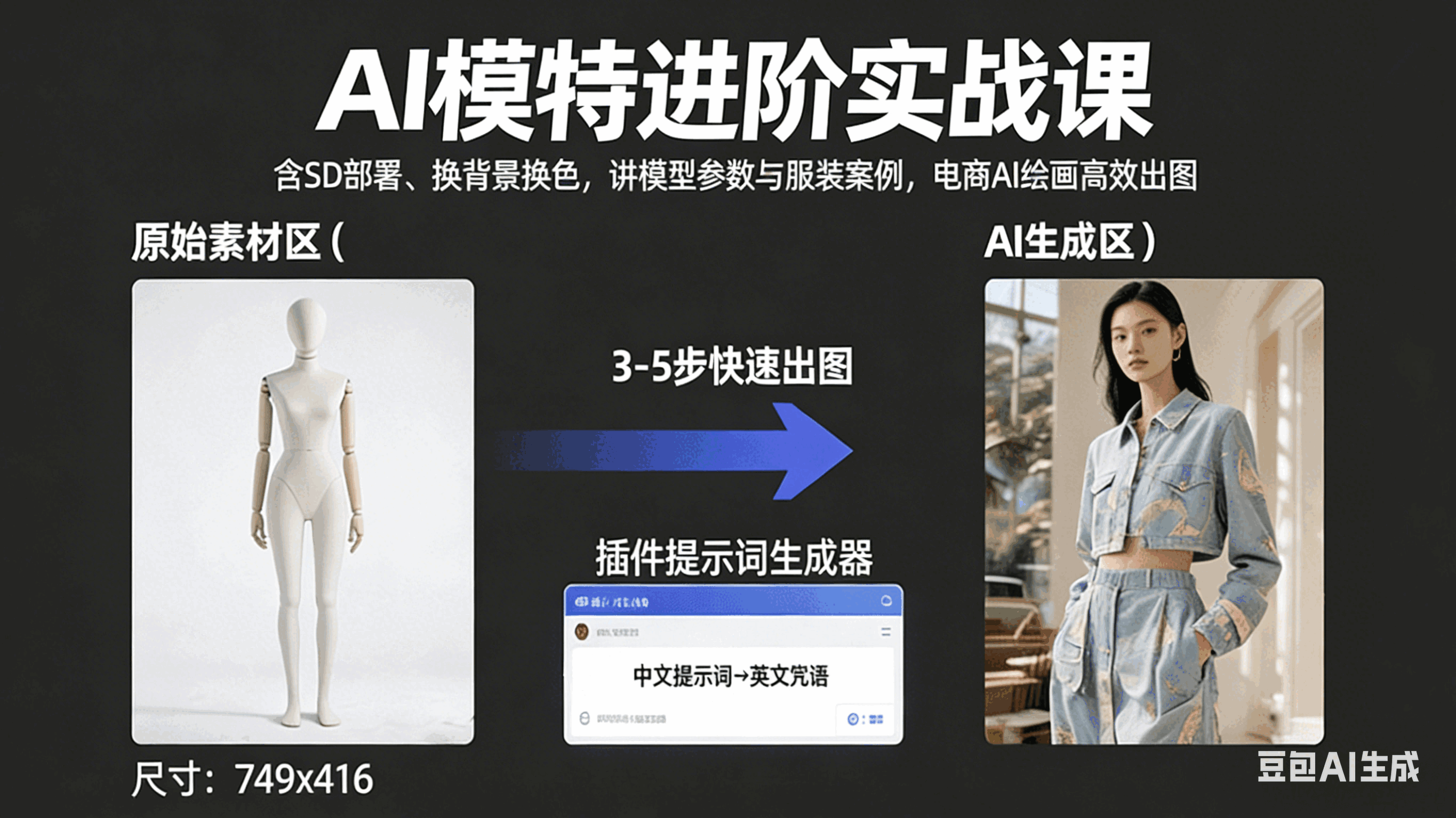 AI模特进阶实战课:含SD部署、换背景换色,讲模型参数与服装案例,电商AI绘画高效出图