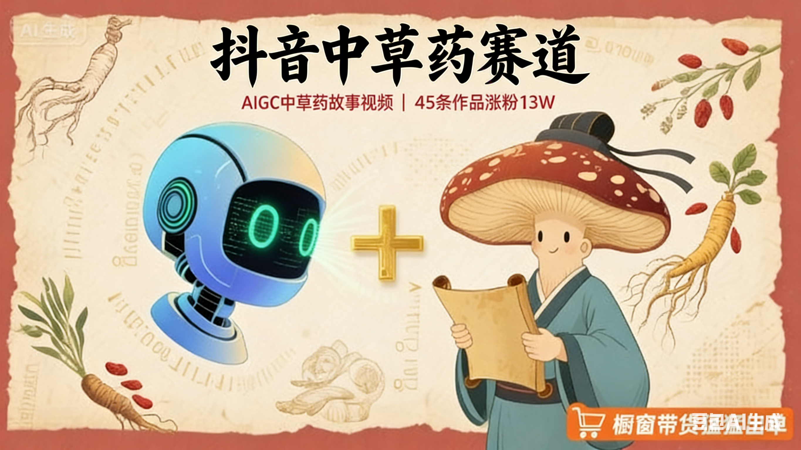抖音中草药赛道,用AI做中草药故事视频,45条作品涨粉13W,橱窗带货猛猛出单