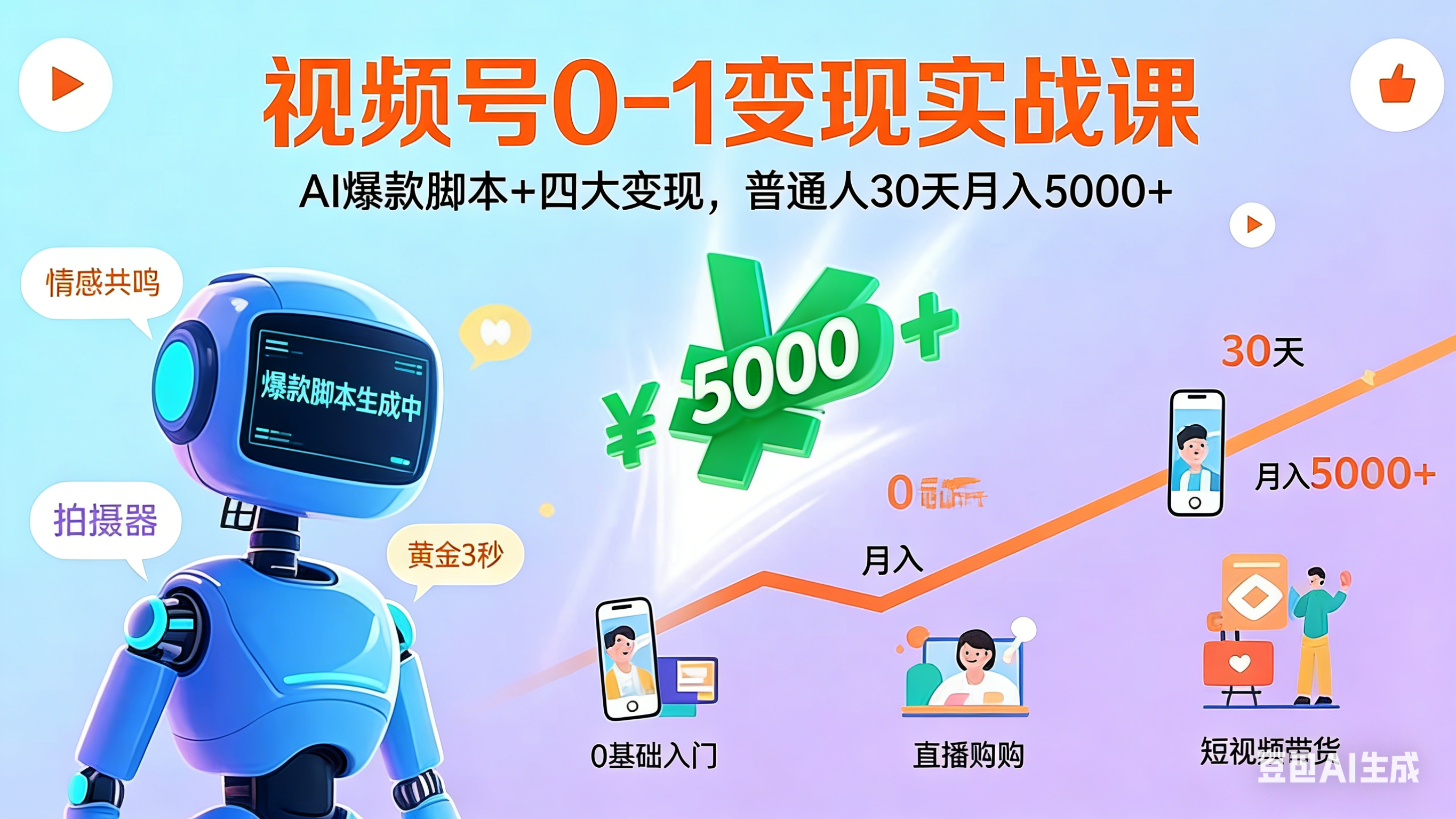 视频号0-1变现实战课:AI爆款脚本+四大变现,普通人30天月入5000+