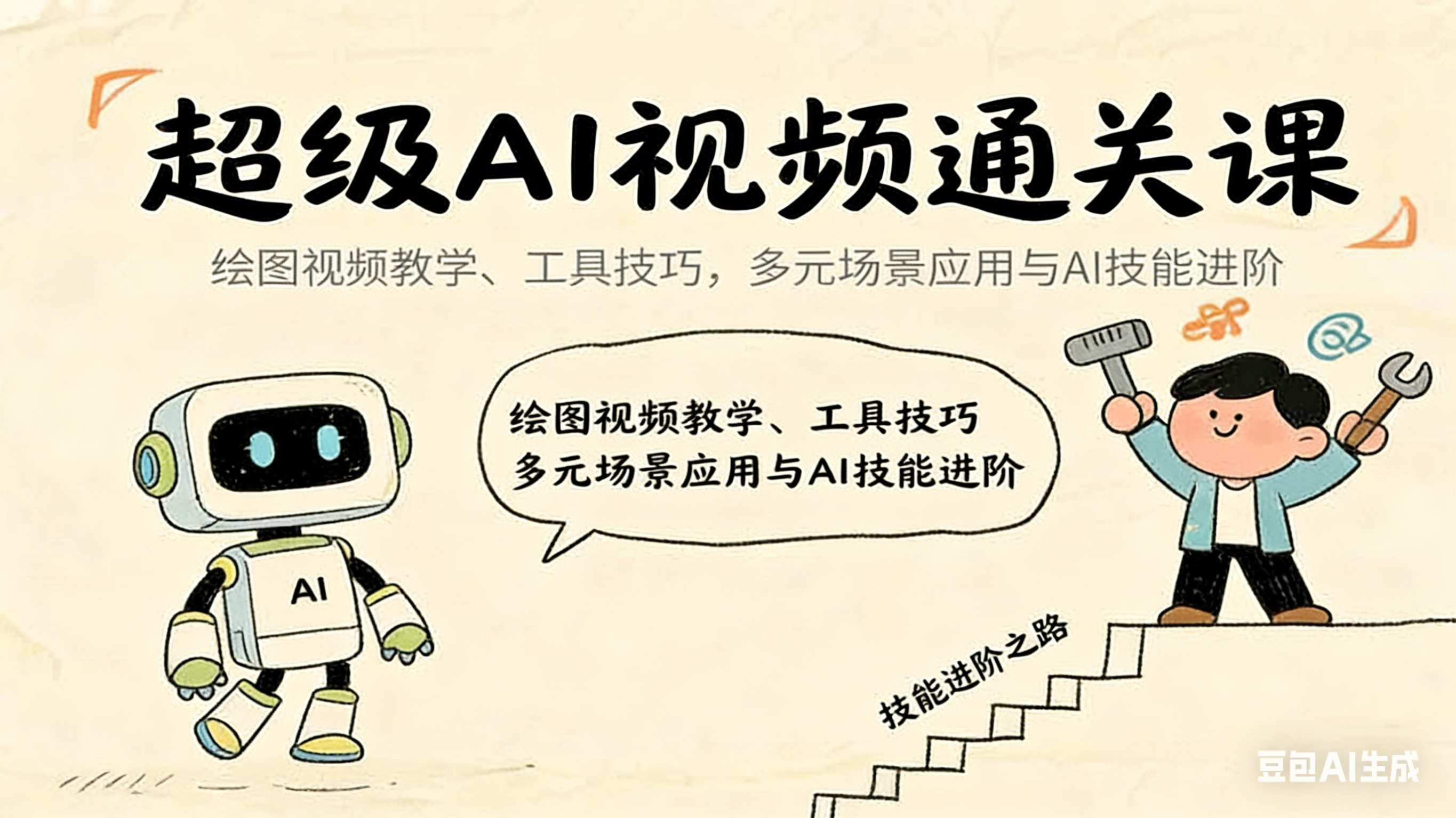 超级AI视频通关课:绘图视频教学、工具技巧,多元场景应用与AI技能进阶