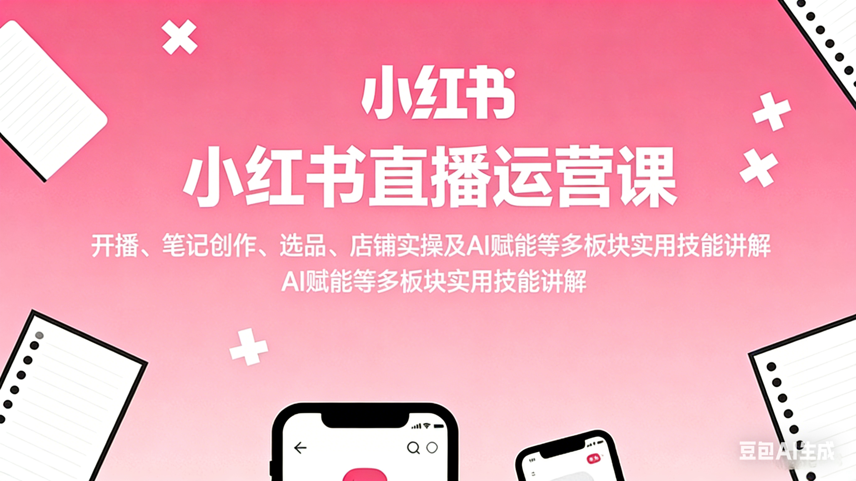 小红书直播运营课:开播、笔记创作、选品、店铺实操及 AI 赋能等多板块实用技能讲解