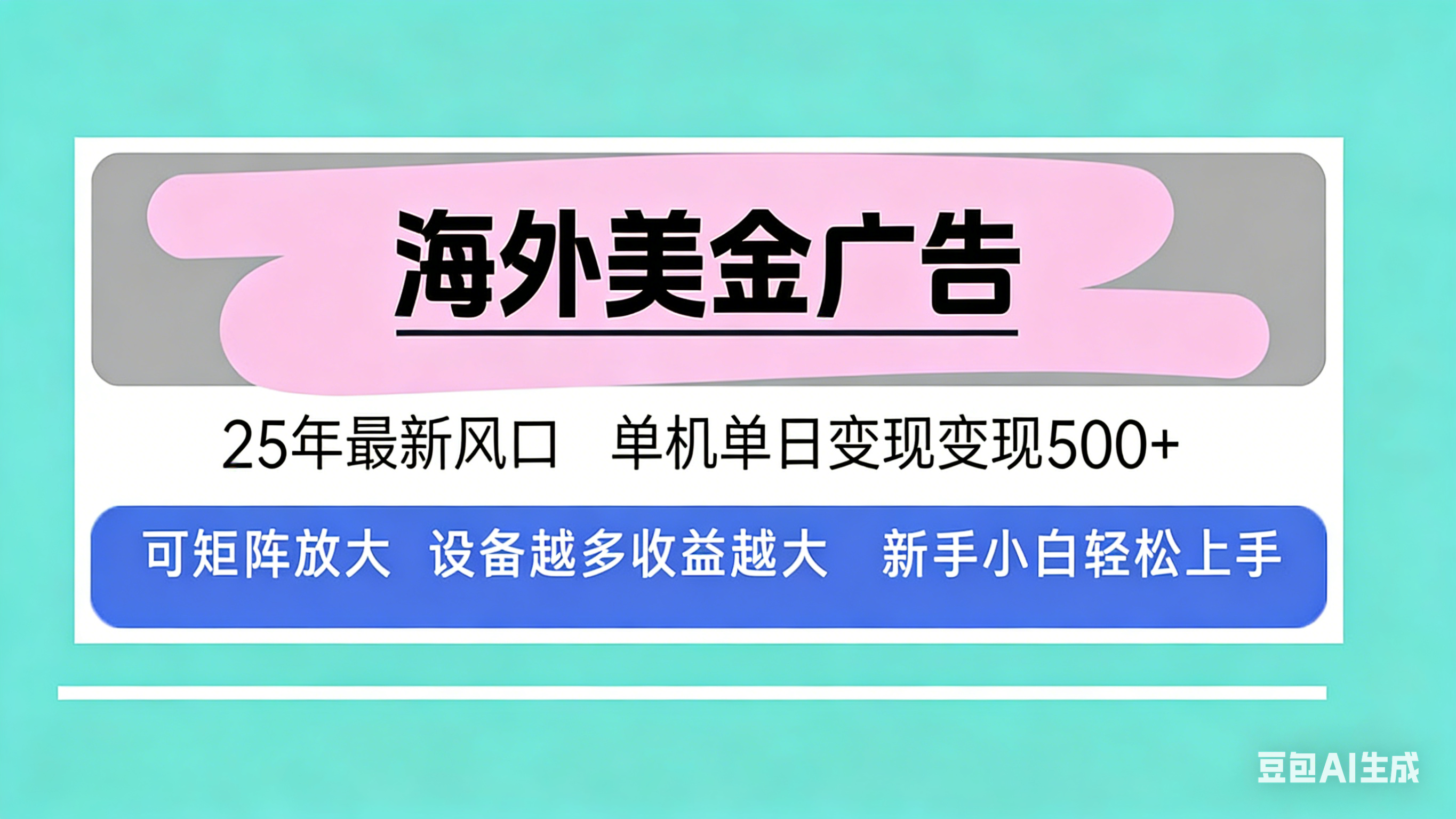 最新海外广告美金,全自动挂机,单机单日500+,可矩阵放大,新手小白轻...