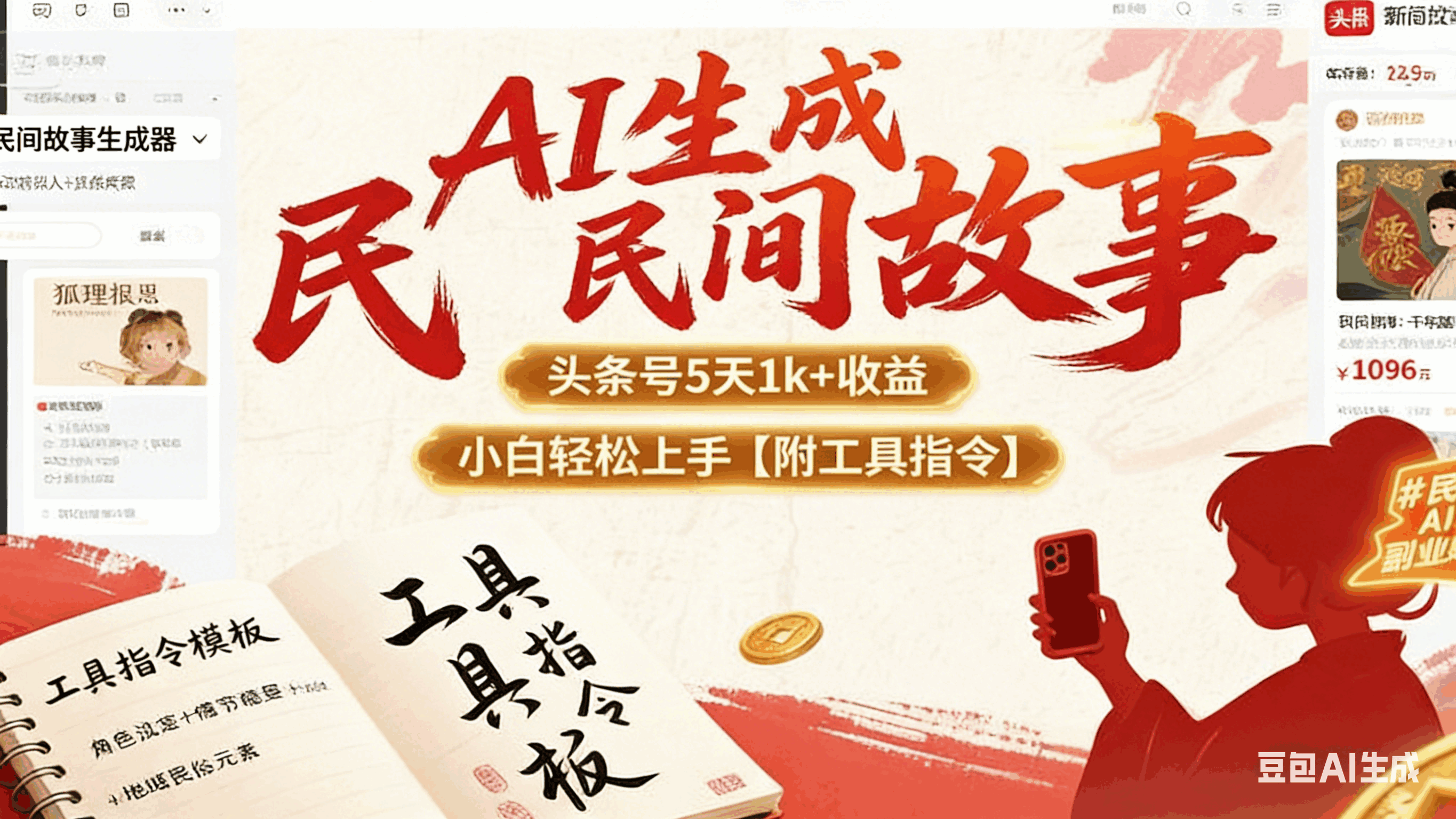 AI生成民间故事,头条号5天1k+,小白轻松上手【附工具指令】